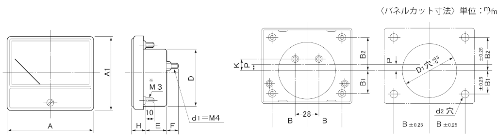 | 型名 | K | P | D | B | B1 | B2 | D1 | d2穴 |